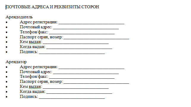 - Реквизиты арендодателя и арендатора. Для граждан достаточно указать: