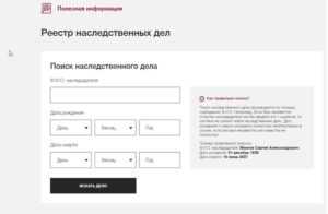 - внизу страницы расположена кнопка «поиск наследственных дел»;