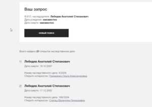Если фамилию указать в конце, поиск не даст результатов, но и не покажет ошибку. Кажется, что наследственного дела не было - Нужно проверять каждую букву. Если написать «Михаиловна» вместо «Михайловна» или «Наталья» вместо «Наталия», поиск будет некорректным. Интересно, что «Семен» и «Семён» система понимает одинаково и выдает правильные результаты. Для надежности ищите по-разному.