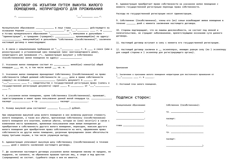 Жильё переходит в собственность нового владельца по договору купли-продажи, и обе стороны, не имея больше претензий друг к другу, подписывают договор об изъятии.