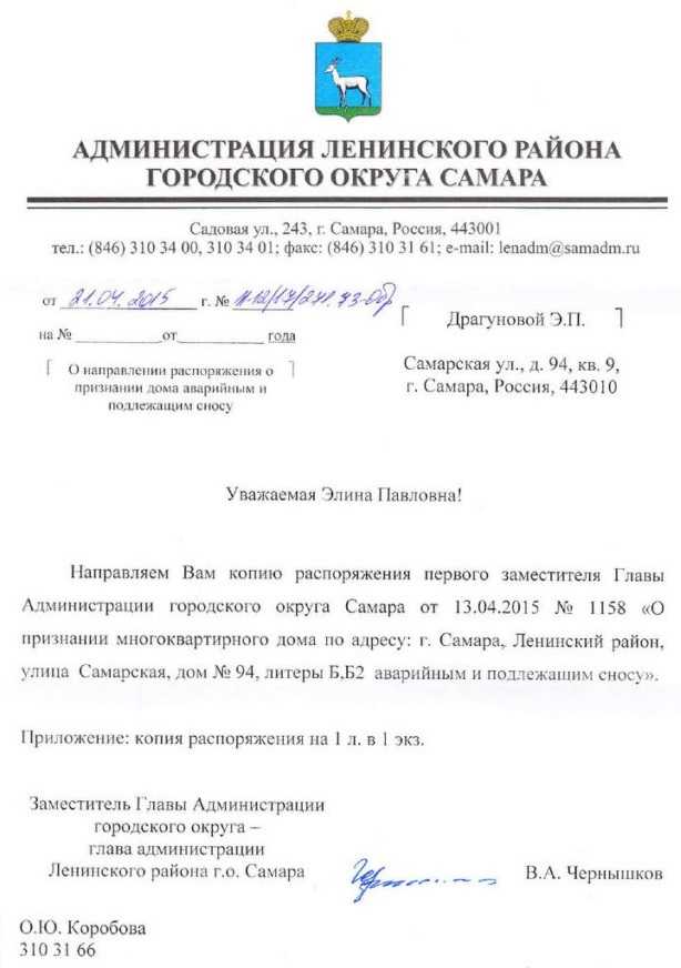 После принятия решения о сносе собственники квартир получат соответствующие извещения. Каждому из них придётся подойти в жилищный отдел администрации, чтобы согласовать дальнейшие действия и заключить договор об изъятии жилплощади.