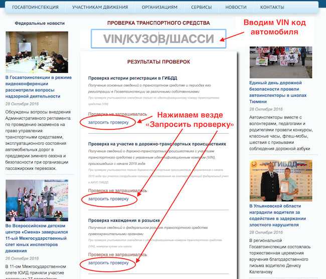 Как проводить проверку по ГИБДД и прочим базам на официальном сайте?