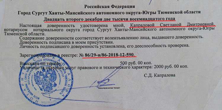 - информацию о том, кто именно заверил доверенность (ФИО нотариуса/работника консульского учреждения/должностного лица органа местного самоуправления);