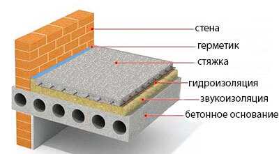 Если со стенами можно обойтись без дополнительных звукоизоляционных материалов, то с перекрытиями уже нет. Для того, чтобы соблюсти строительные нормы пол (стяжка) должен лежать на упругом звукоизоляционном слое и не должен иметь жестких связей с несущей частью перекрытия, стенами и другими конструкциями здания.