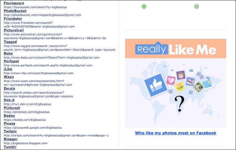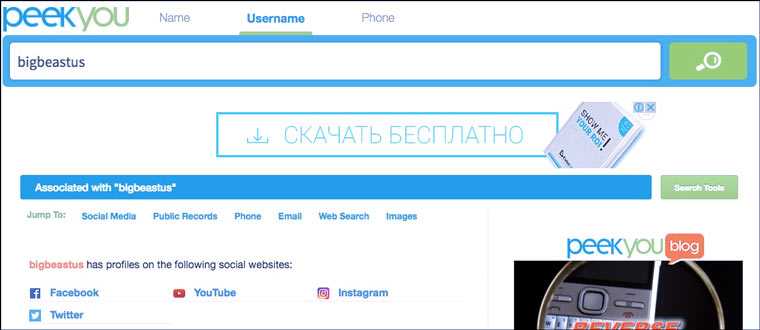Мета-поисковики и агрегаторы. В России самый популярный — people.yandex.ru, за рубежом есть PeekYou и аналоги, которые легко нагуглить по запросу «people search». Базы и возможности у них скудные, чаще всего джентльменский набор это имя и город. Но их плюсом является то, что они часто находят связанные аккаунты в других социальных сетях, о которых вы могли даже не догадываться.