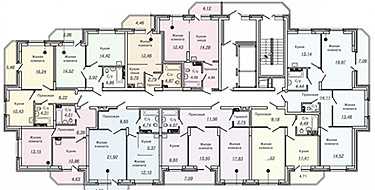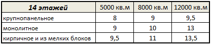 - Здания с 14 этажами (при площади от 5000 до 12000 кв.м.):