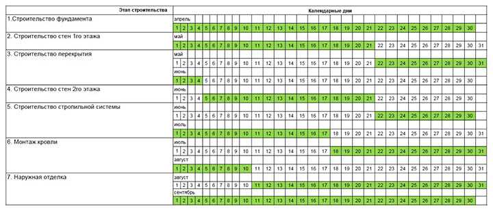 Как мы уже отмечали, время, затраченное на стройку, для каждого дома — индивидуально. Но можно посчитать примерные сроки каждого этапа строительства. Опытные застройщики знают это и применяют при составлении календарного плана работ: