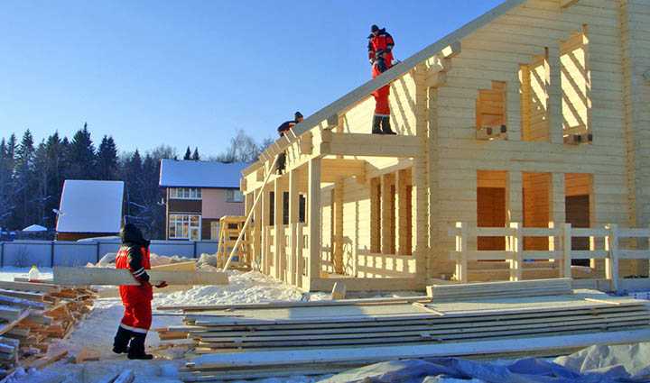 Если дом каменный, зимой стройку можно продолжать: делать уже внутренние отделочные работы и разводку коммуникаций. Если — деревянный, придется ждать до лета (время на усадку).