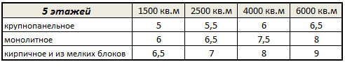 - Пятиэтажные здания. В зависимости от технологии период возведения следующий (при площади от 1500 до 6000 кв.м.):