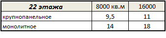 - Здания с 22 этажами (при площади от 8000 до 16000 кв.м.):