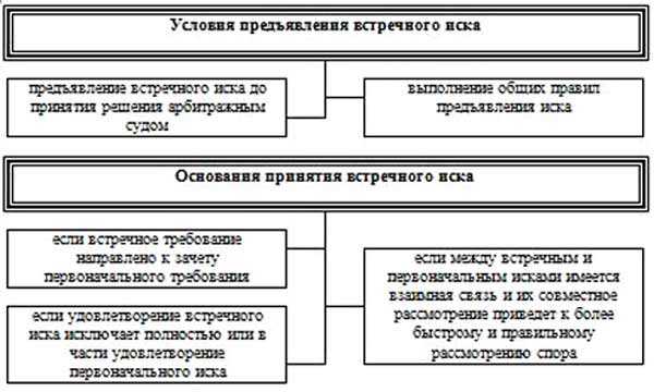 - Удовлетворение встречного заявления исключает положительное решение по основному документу полностью или какой-то частью.