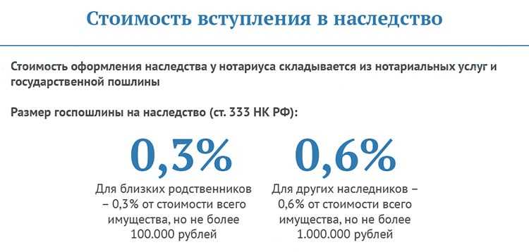 - Все иные наследники — 0,6% стоимости имущества, и верхний порог для них — 1 млн. рублей.