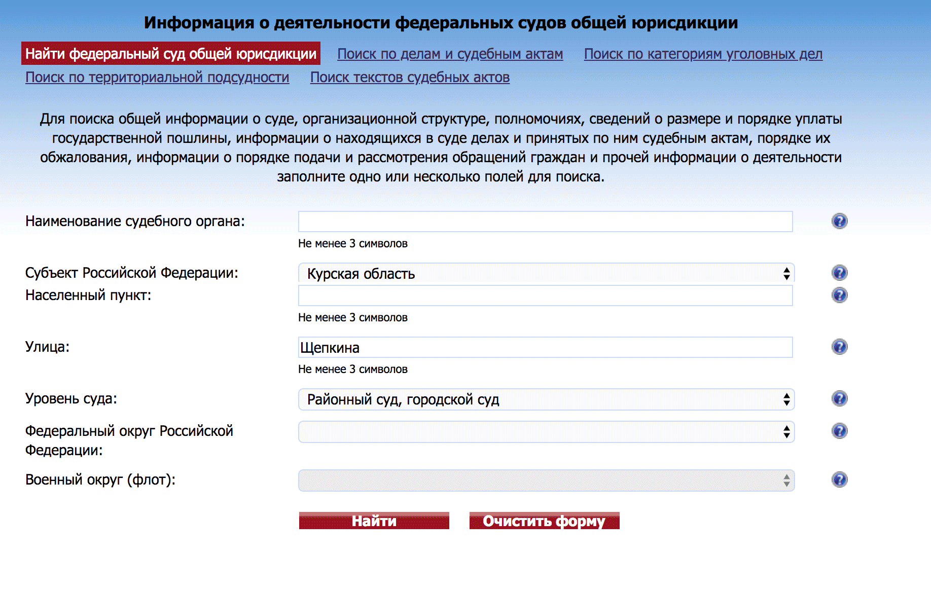 Чтобы найти нужный суд, ответьте на 6 вопросов.