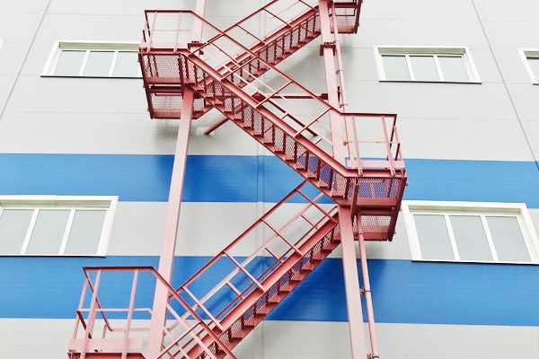 Если говорить о наружных пожарных лестницах, то они должны изготавливаться только из негорючих материалов, устанавливается на стены из огнестойких материалов, и располагаться от ближайшего окна на расстоянии 1 м (не меньше). Лестничная площадка таких лестниц, это касается пожарного выхода, должна быть шириною, равной ширине лестничного марша. И такие конструкции обязательно оборудуются ограждениями высотою не меньше 1,2 м.