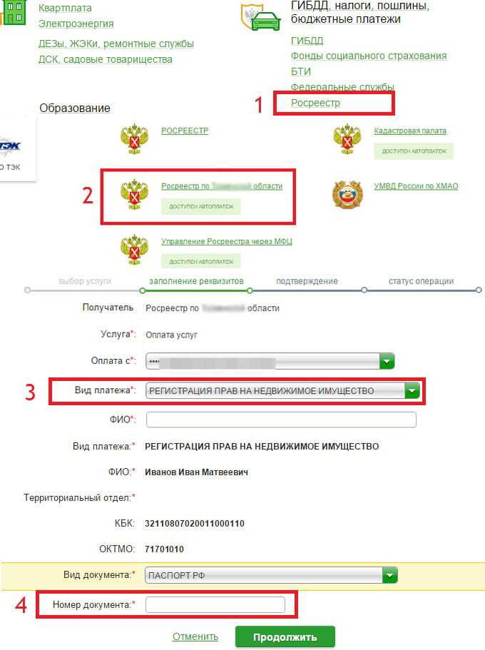 Госпошлина за регистрацию права собственности через Сбербанк Онлайн.