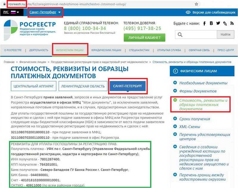 Платежные реквизиты для оплаты госпошлины могут отличаться в зависимости от региона расположения недвижимости, оформляемой в собственность. Их можно взять при обращении в МФЦ. Однако, для получения актуальных сведений лучего воспользоваться официальным сайтом Росреестра.