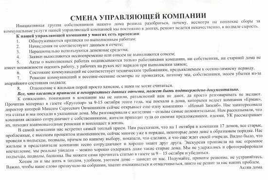 Обязательно обсудите вопрос смены УК с соседями и собственниками других помещений в МКД.
