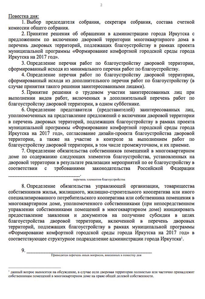 • предложить жителям дома внести свои предложения, указав, кому, как и в какой срок их можно направить;