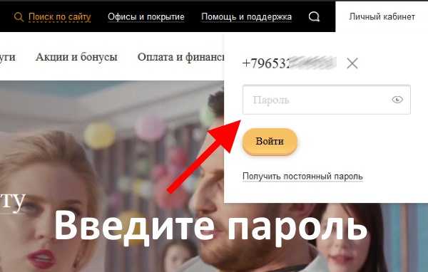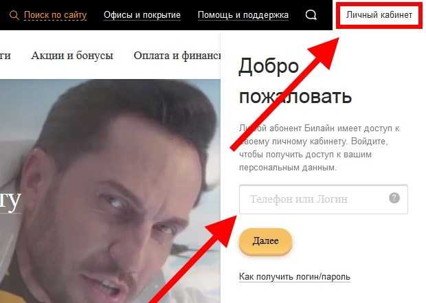 - Затем наведите курсор на пункт меню « Личный кабинет ». Вы увидите форму, куда нужно ввести номер телефона. Сделайте это и нажмите кнопку «Далее»;