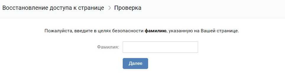 «ВКонтакте» позволяет ввести номер телефона для восстановления доступа к странице, но требует фамилию, к которой привязан номер.