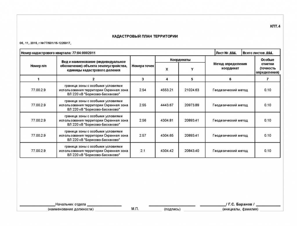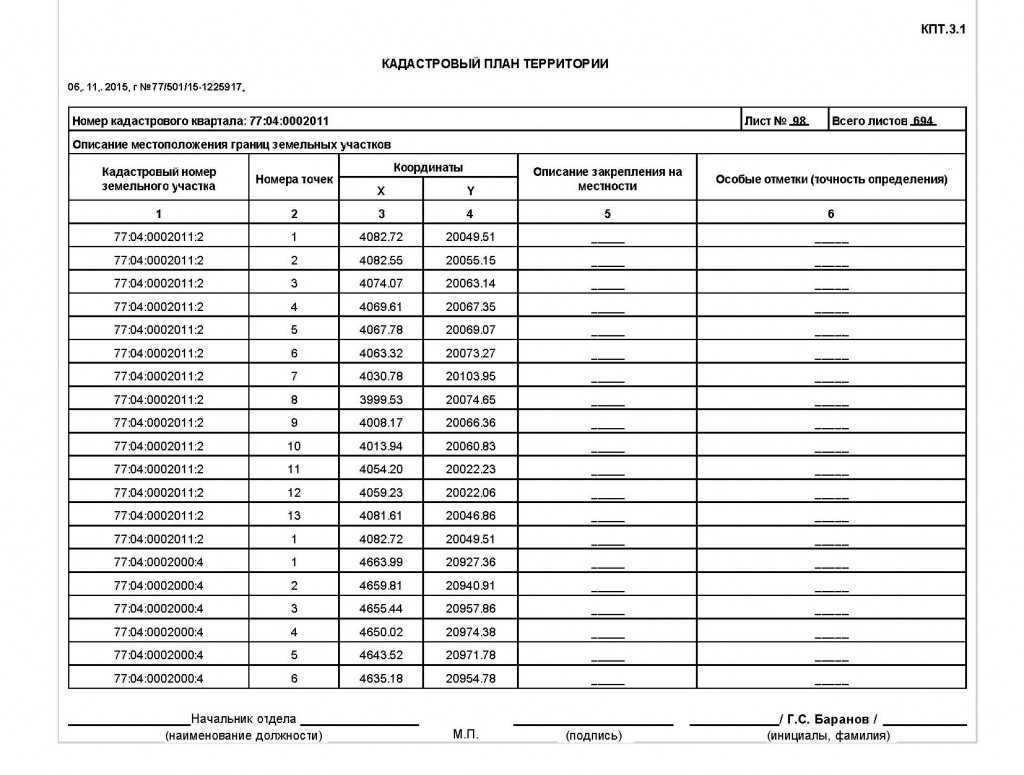 Не всегда КПТ содержит все разделы. В зависимости от того, с какой целью требуется кадастровый план территорий. Например, если план запрашивают с целью получить информацию об опорной межевой сети, в него войдет всего два раздела – КПТ-1 и КПТ-5. Оформляют документ по тем же правилам, что и кадастровый паспорт участка. План в электронном формате заверяют электронной цифровой подписью.