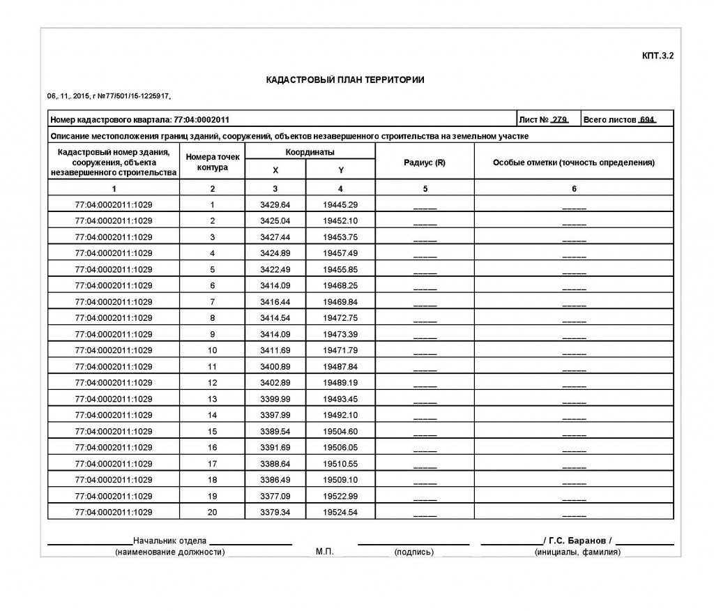 - отдельный документ (непосредственно КПТ с указанием координатных точек) или в виде приложения, содержащегося в выписке ЕГРН.