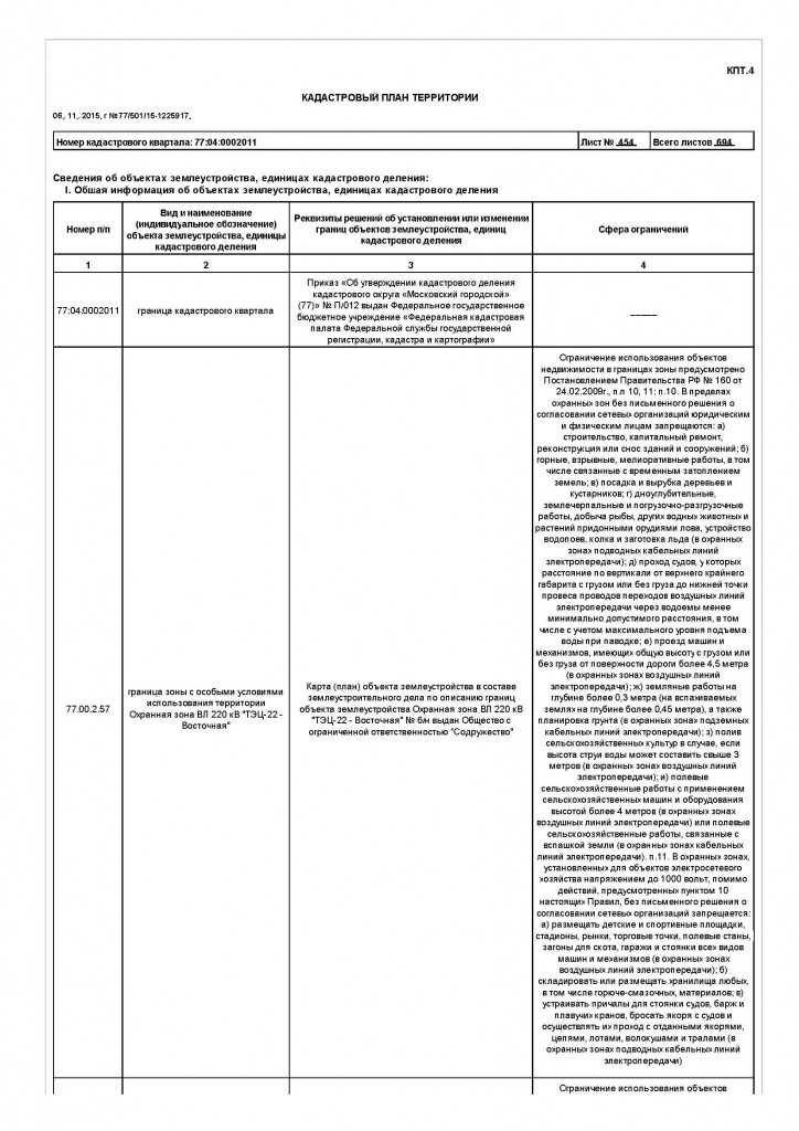 КПТ-4. Общая информация и местоположение границ землеустроительных объектов. В общей информации указывают их вид и наименование, единицы кадастрового деления, данные о решениях, на основании которых устанавливались или изменялись границы таких объектов. Для зон с особыми условиями использования указывают сферу ограничений.