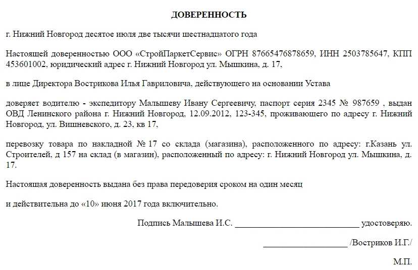 Самое важное: доверенность на перевозку груза обязательно должна содержать сведения о доверителе и информацию о его представителе. Также в ней должны быть данные о грузе, месте отправления и назначения.