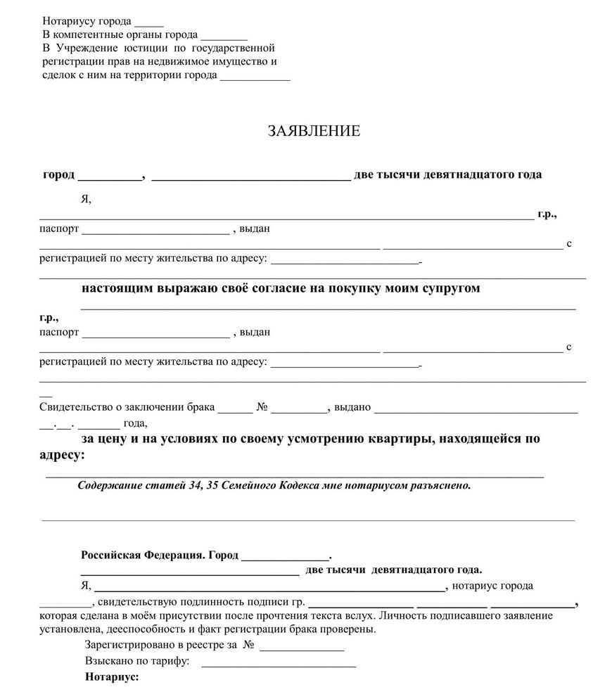 Какой порядок оформления согласия супруга(и) на покупку квартиры?