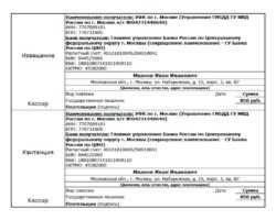 - наименование и реквизиты получателя платежа, которым является регистрационное подразделение автоинспекции наименование и реквизиты банка, обслуживающего получателя платежа ФИО или полное наименование компании, являющейся плательщиком сбора адрес постоянного прописки или регистрации компании соответственно сумма платежа дата совершения банковской операции