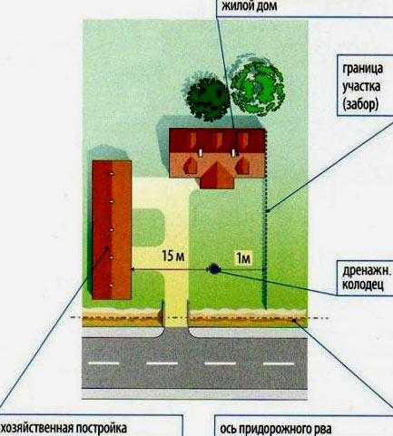 - расстояние между постройкой и главной дорогой – 5 метров;
