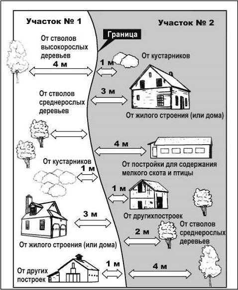Таким образом, также необходимо учитывать расстояния от границ смежных участков.