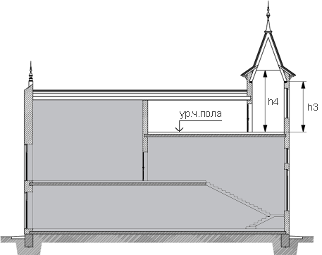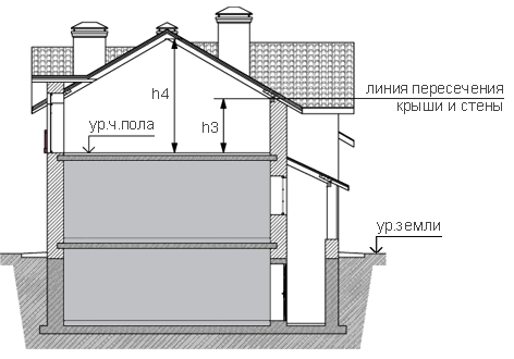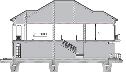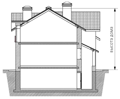 При различном количестве этажей в разных частях здания, а также при размещении здания на участке с уклоном, когда за счет уклона увеличивается количество этажей, его определяют отдельно для каждой части здания.