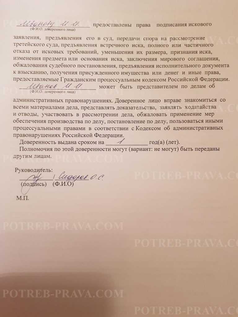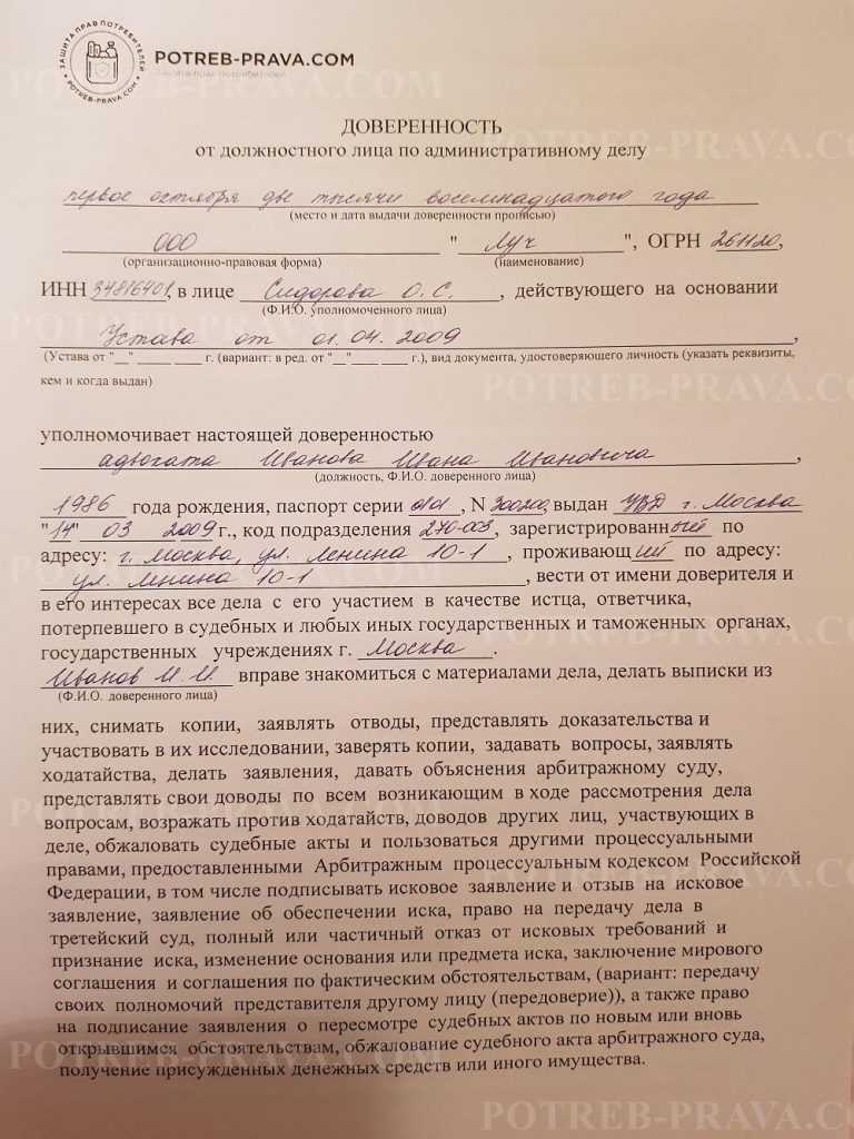 ВНИМАНИЕ! Посмотрите заполненный образец доверенности от должностного лица по административному делу:
