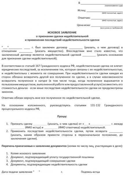 Если сделка по своему виду, форме и правовой сути является ничтожной, то обращения в суд не требуется. Стороны могут просто отказаться от всех ранее взятых обязательств и фактически игнорировать требования договора. С другой стороны, подобное разрешение дела наблюдается редко, поскольку каждое лицо может обратиться в суд для защиты своих прав. Поэтому чаще всего признание притворной сделки таковой (а значит, и недействительной) происходит в судебном порядке. Последовательность действий в общем случае следующая: