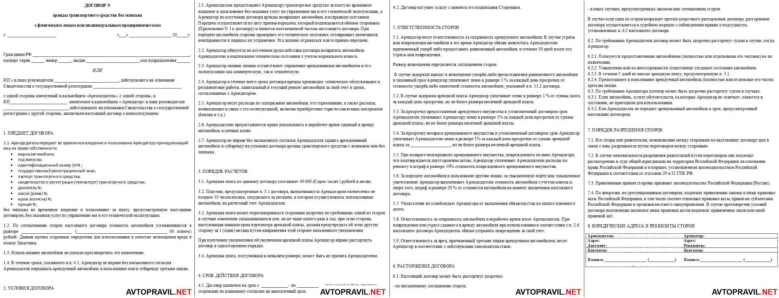 Но арендные отношения более сложны, чем простая передача автомобиля родственнику или знакомому. Они предусматривают оплату пользования имуществом и охватывают ряд спорных вопросов, решение которых лучше закрепить подписями сторон. Например, кто платит за ремонт автомобиля при аварии, порядок оплаты штрафов, выписанных собственнику в момент нахождения арендатора за рулем, ответственность сторон и др. Поэтому арендные отношения должны быть закреплены договором.