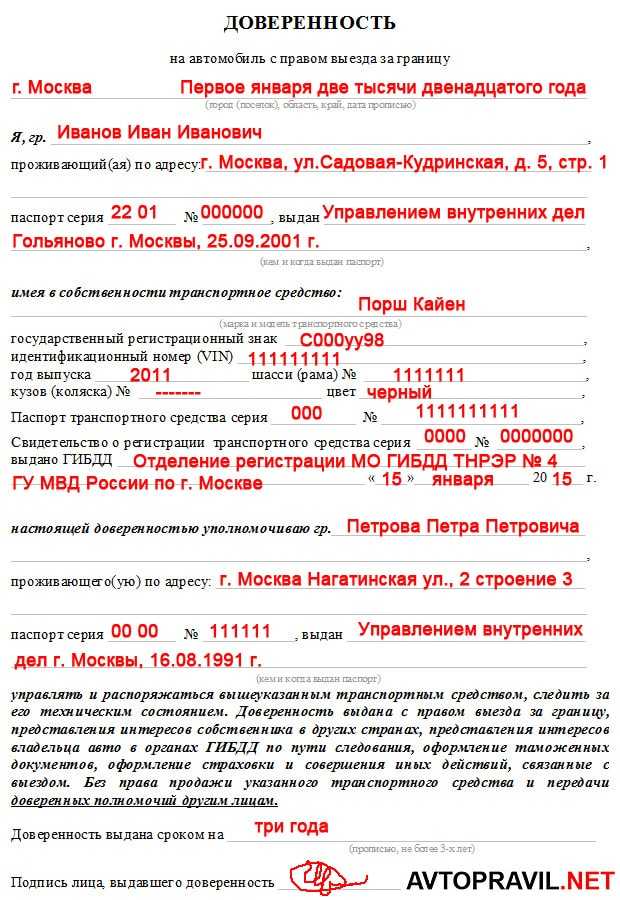 Скачать образец доверенности на машину с правом выезда за границу