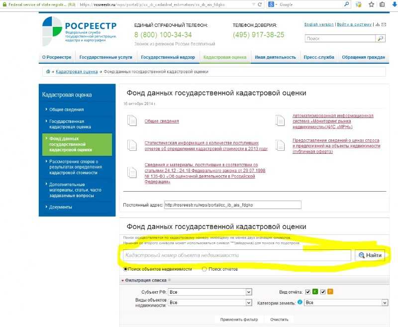 - Выбрать соответствующую государственному кадастру недвижимости вкладку.