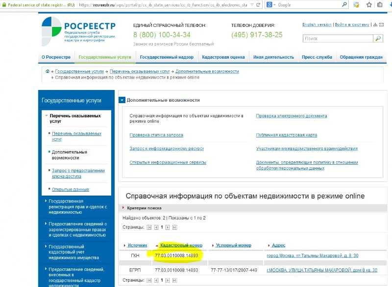 - Нажать кнопку «Найти объект» и просмотреть информацию о недвижимом имуществе.