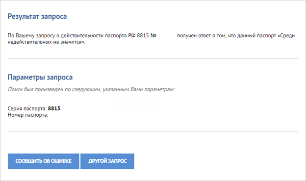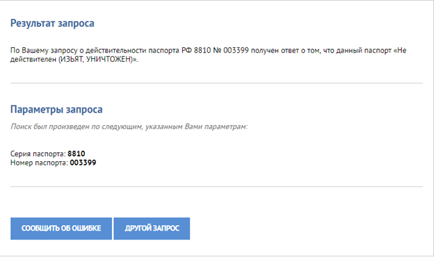 К сожалению, сервис иногда дает сбои. Он может выдать недействительный паспорт за подлинный и наоборот. Именно поэтому информация, предоставляемая данным сервисом, не является юридически значимой.