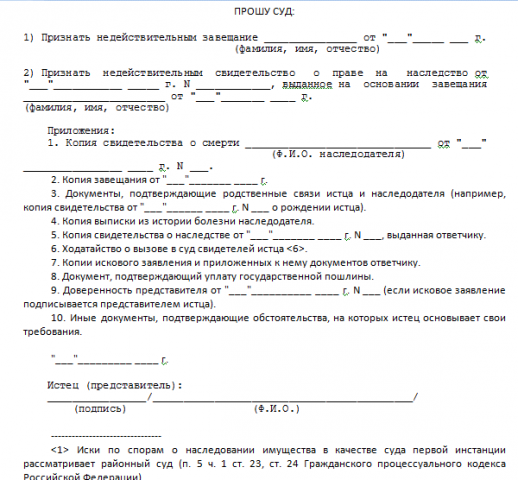 Как составить иск на оспаривание завещания
