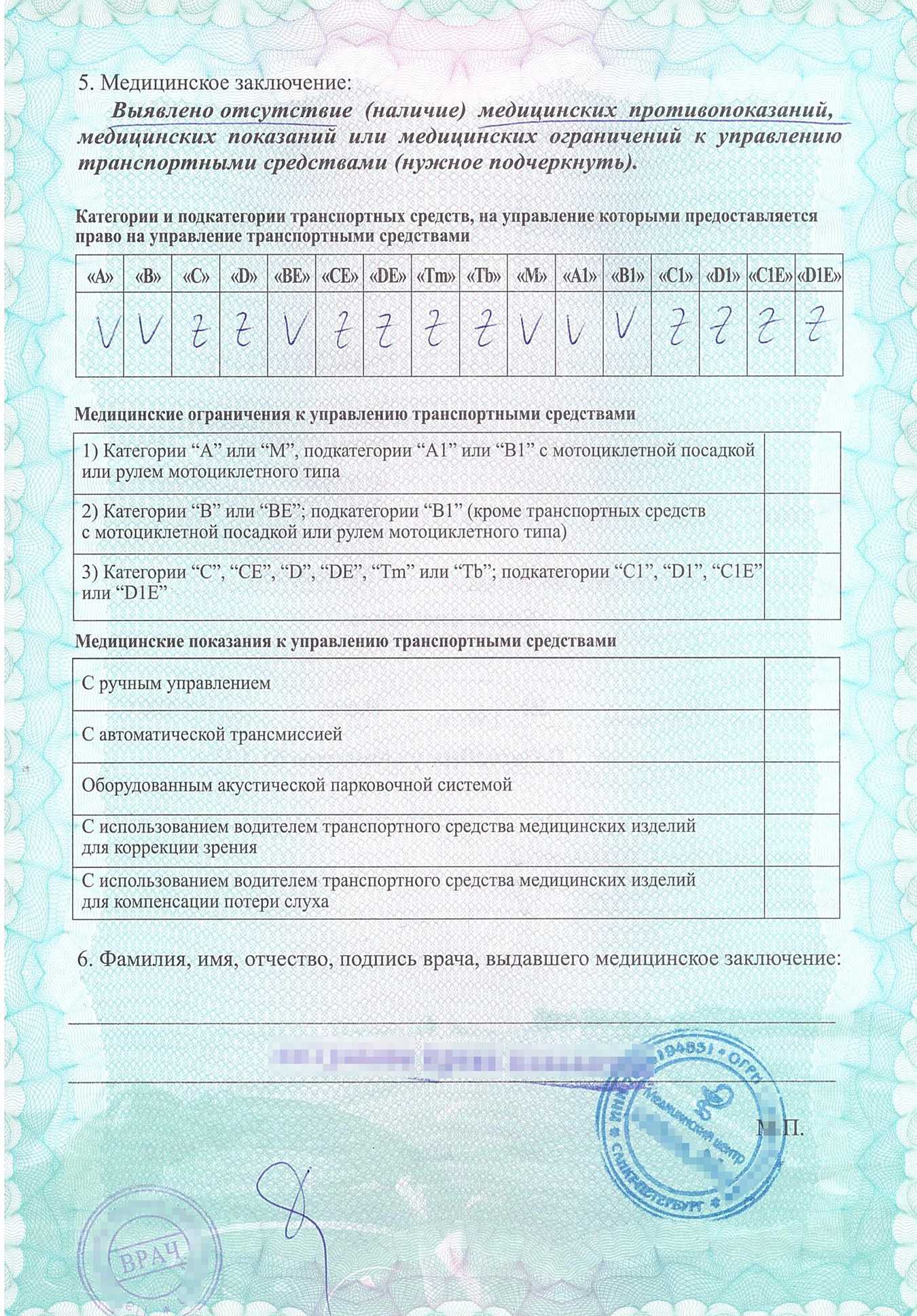 Вместе с этими справками следует прийти в организацию, где проводят водительскую комиссию, и пройти обследование у остальных врачей. Вам оформят и выдадут на руки бланк-карточку, куда врачи впишут заключения. Справки от нарколога и психиатра заберут и вклеят в эту карточку. Вместо нее в конце выдают медицинское заключение о том, что вы допущены к управлению транспортными средствами определенных категорий.
