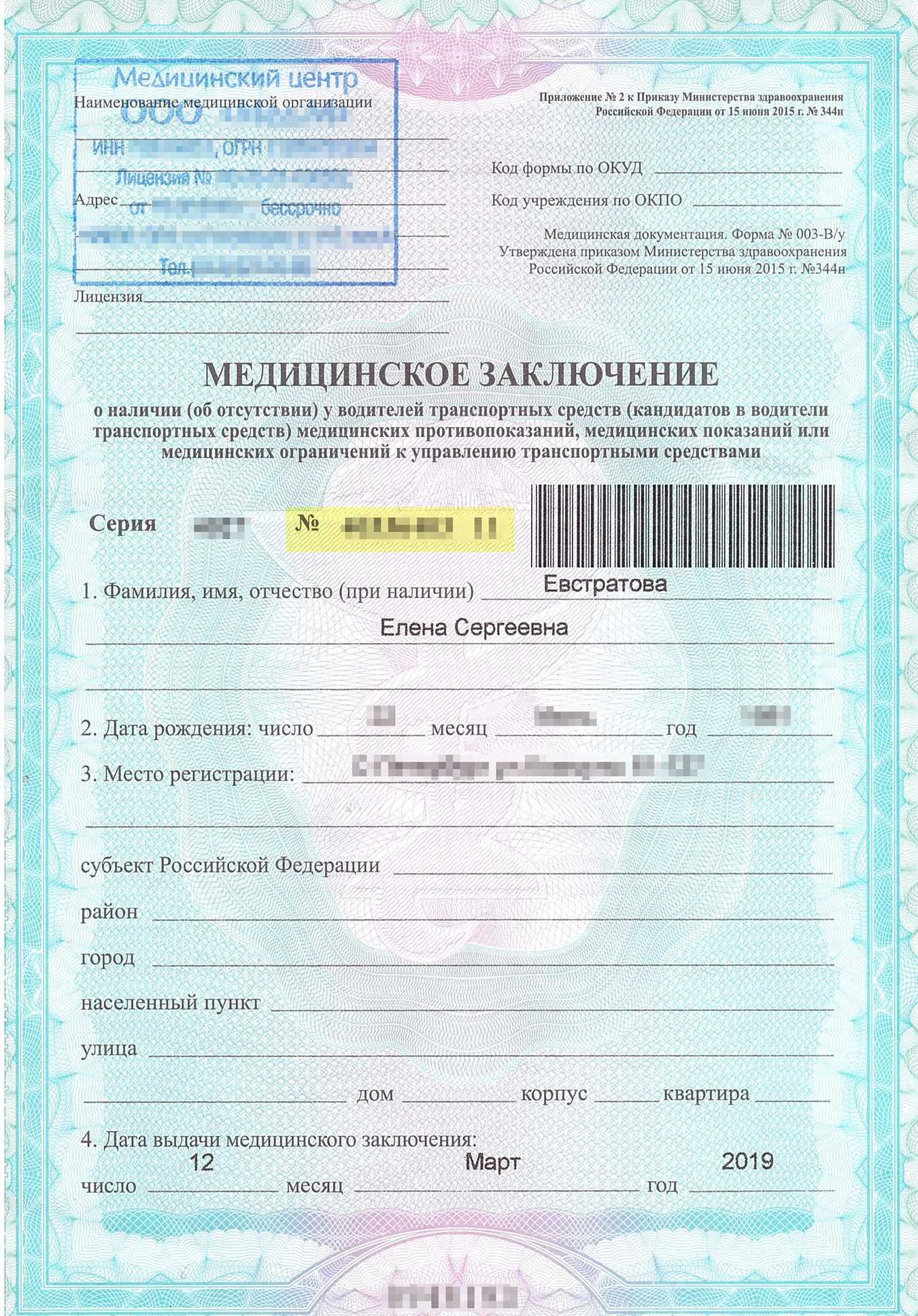 Вместе с этими справками следует прийти в организацию, где проводят водительскую комиссию, и пройти обследование у остальных врачей. Вам оформят и выдадут на руки бланк-карточку, куда врачи впишут заключения. Справки от нарколога и психиатра заберут и вклеят в эту карточку. Вместо нее в конце выдают медицинское заключение о том, что вы допущены к управлению транспортными средствами определенных категорий.