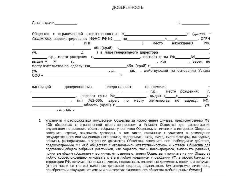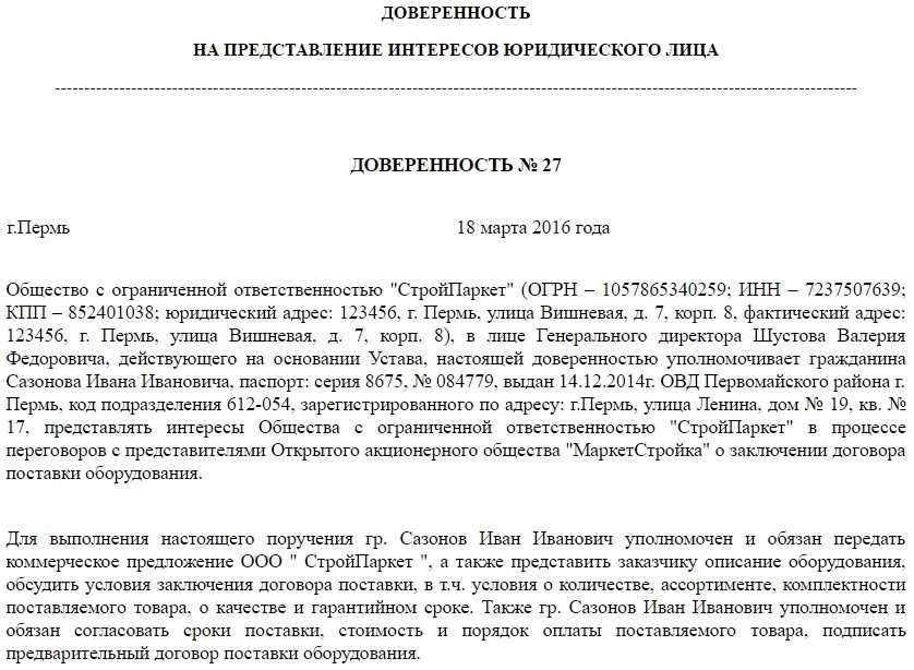 Образец доверенности на представление интересов ООО