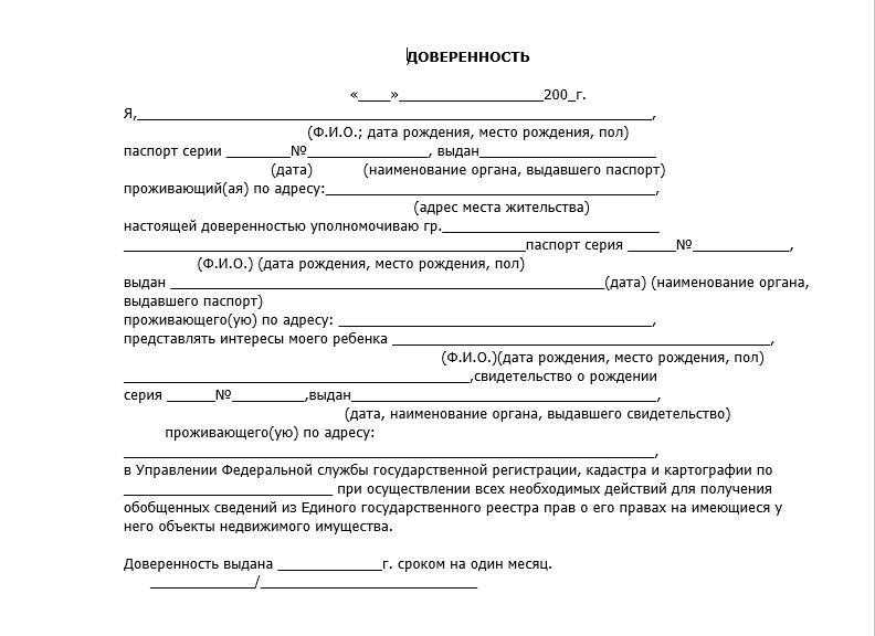Образец доверенности на право представления интересов ребенка