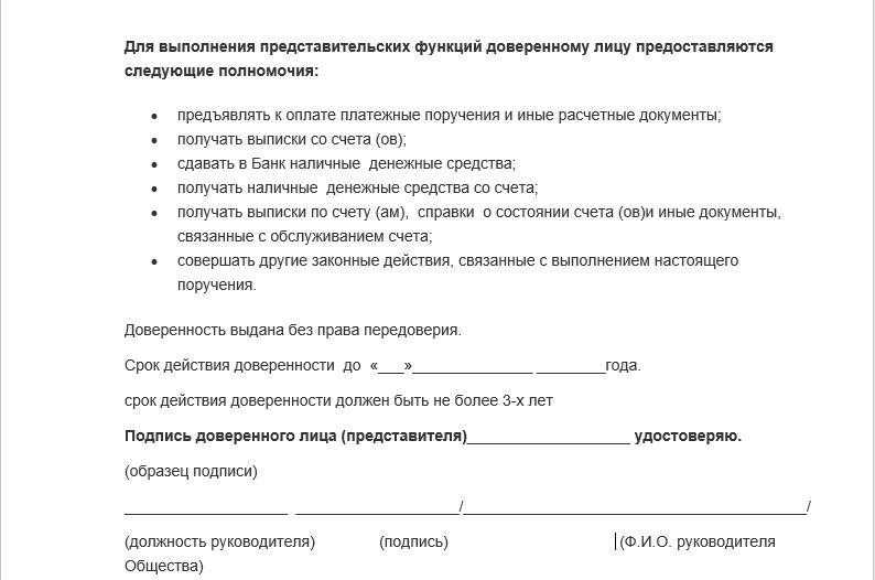 Образец доверенности на представление интересов в банке
