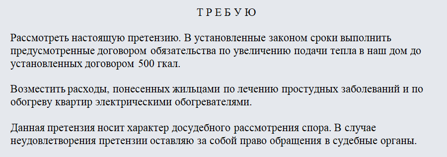 Ниже изложены некоторые рекомендации к содержанию претензии: