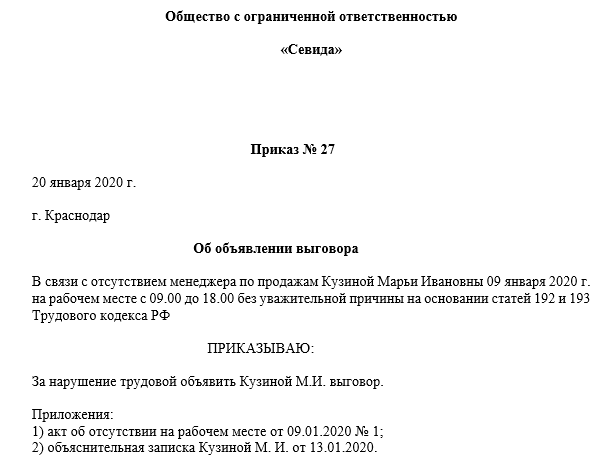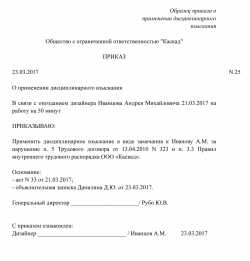 Оформляем приказ о привлечении работника к дисциплинарной ответственности. Образец приказа