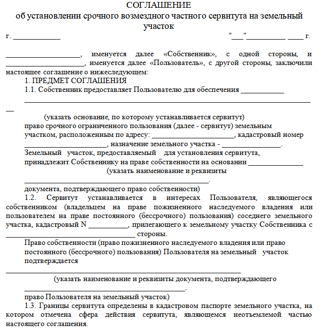 В каждом из этих документов оговариваются условия, на которых будет установлено обременение: его срок, наличие и величина оплаты, цели, в которых может использоваться участок и т. п.