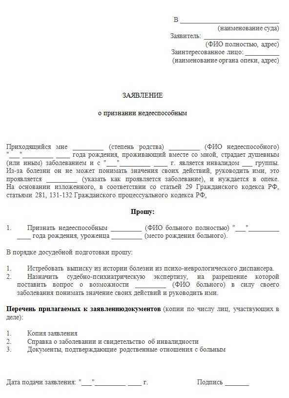 Признание недееспособным психически больного человека – процедура, составление и подача заявления в суд